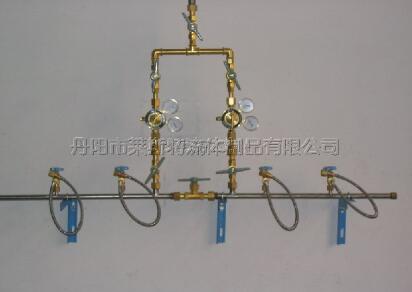 氣體匯流排指瓶裝高壓氣體,通過此設備減壓到一定的使用壓力,是集中供氣體的一種設備。氣體匯流排由左右兩根匯流主管道組成,中間有四只高壓閥門,分別控制左右兩組匯流管,每組有相稱數目的分閥,軟管及卡具連接氣瓶,中間裝有一塊高壓表,氣體匯流排用來檢測匯流管內的壓力,高壓閥門上方分別有兩組減壓器,以便控制調節(jié)使用壓力及流量,減壓器上方分別有兩只低壓閥門,用來控制兩排氣體匯流排切換時的低壓氣體,匯流低壓主管道裝有一只低壓總閥門,用來控制低壓管道的氣體。